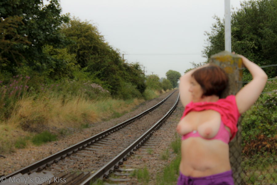 We took these pictures last summer down in Sussex on a rather damp wet August day. This was an area where I spent lots of my childhood summers and so I knew this little level crossing was located in valley at the bottom of a country lane and I was determined to find it. It took a bit of hunting and map reading but we got there in the end and timed it with the rain stopping. We had just started snapping away and I had my boobs out when all the lights and sirens started blaring. To say I jumped 5 feet in the air might actually be an understatement. The timing made it feel like the arrival of my boobage had set of the alarms and lights off and I found myself hiding behind the bushes as Sir, nearly dying of laughter, watched the train passing through.